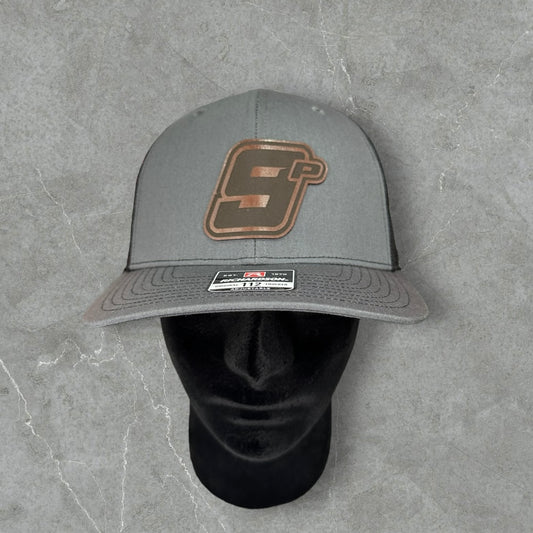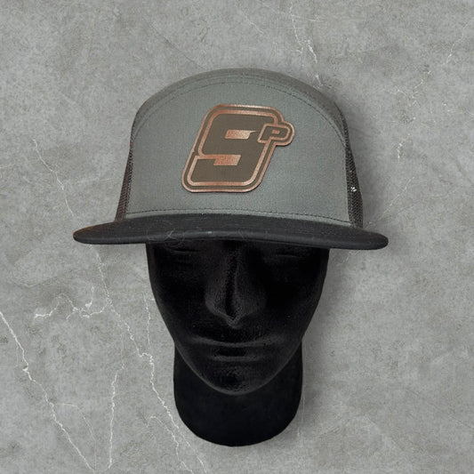 9P Leather Patch Charcoal Grey/Black Flat Bill Hat